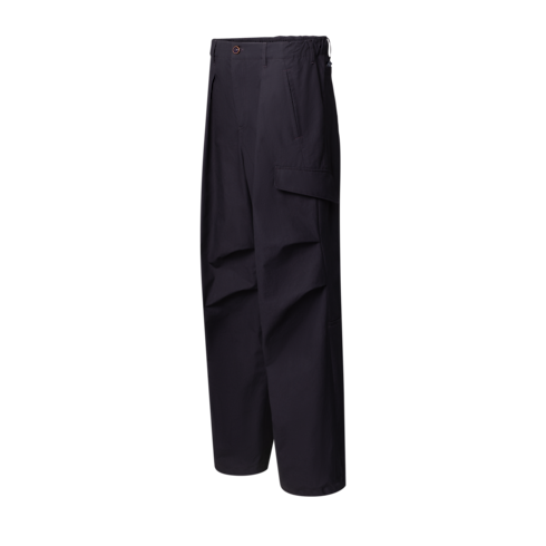 Ce pantalon en coton revisite l'inspiration randonnée avec une élégance décontractée. Il se décline dans un coloris violet indigo intense, délavé et surteint pour offrir un look doux et patiné, tandis qu’une taille élastique et de multiples poches garantissent confort et fonctionnalité. Une broderie Louis Vuitton Paris ton sur ton, placée au-dessus d’une poche arrière, signe cette interprétation sophistiquée d'un style technique.