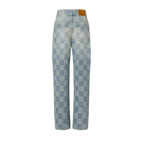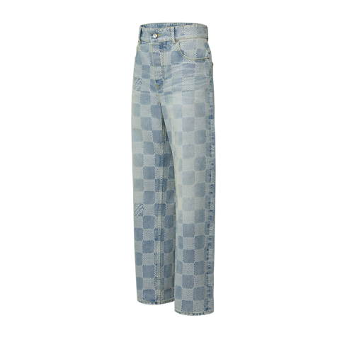 Ce pantalon en denim indigo délavé est rehaussé d'un Damier 3D en jacquard. Ce motif est revisité avec modernité par des carreaux texturés et les signatures « Marque L. Vuitton Déposée » intégrées. Ce modèle apporte naturellement une note contemporaine à tous les looks.