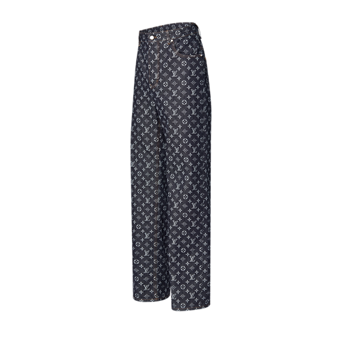 Décliné dans un coloris indigo foncé, ce pantalon droit est habillé d’un motif Monogram contrasté qui lui confère une allure graphique. Doté d’une coupe décontractée, il est orné de rivets et d’un bouton semblables à des perles, apportant une note dandy. Porté avec une veste en denim assortie, ce modèle permet de créer un look audacieux et distinctif.