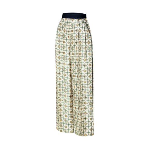 Ce pantalon raffiné en twill de soie s'orne du motif Monogram de la saison inspiré de l’Art nouveau. Sa coupe ample et fluide est rehaussée de plis à l'avant et de poches passepoilées à l'arrière, offrant une allure élégante et structurée. Une ceinture élastique contrastée apporte une touche contemporaine à ce modèle.