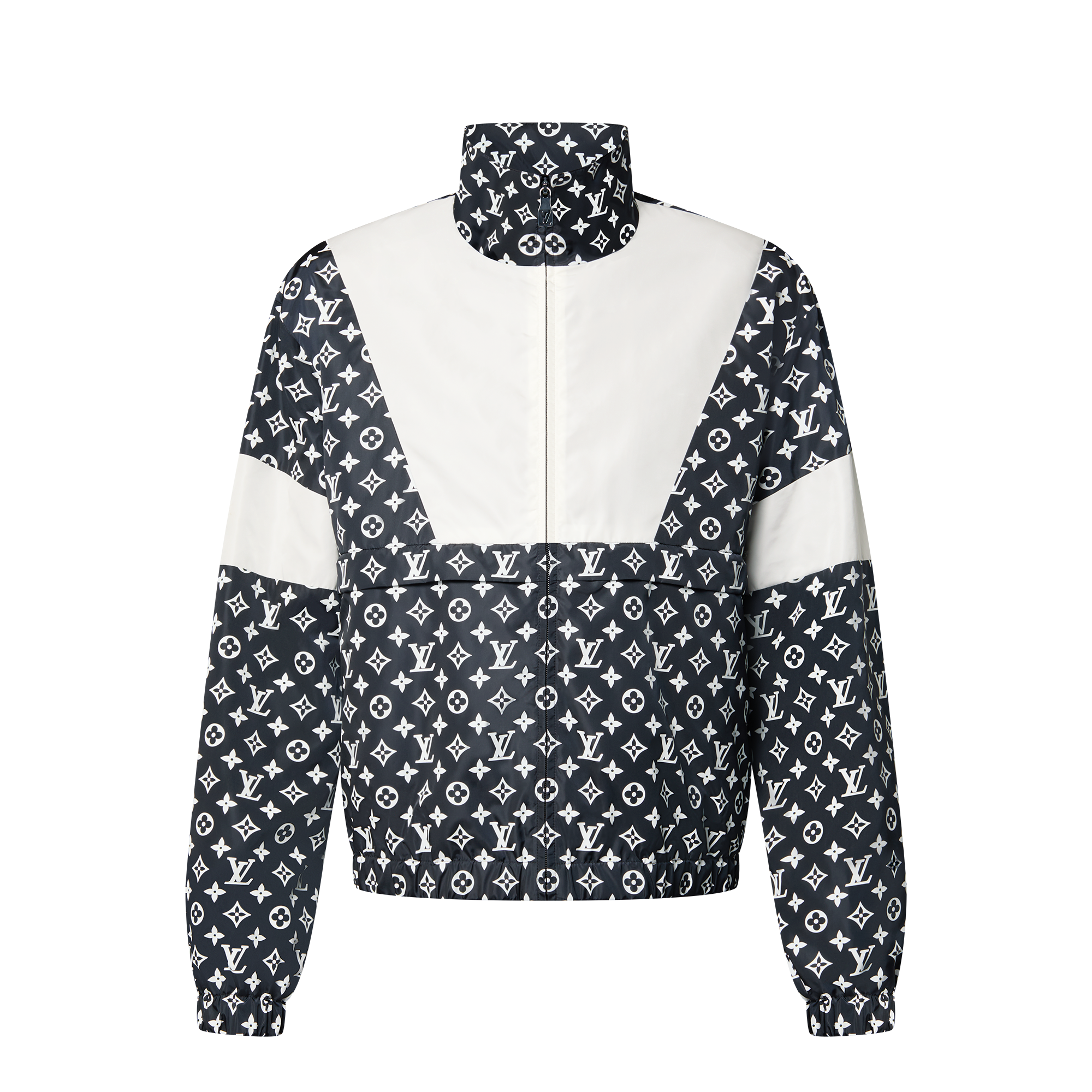 Issu du défilé Automne-Hiver 2024, ce pantalon sportswear ajoute une note audacieuse aux tenues décontractées. Son tissu technique présente un fini satiné sublimé par un imprimé Monogram blanc sur bleu marine graphique, tandis que des empiècements blancs contrastés prêtent un esprit sportif aux jambes. Porté avec la veste sportswear assortie, il compose une tenue coordonnée.