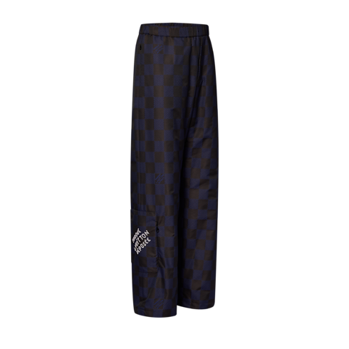 Confectionné en tissu technique léger, ce pantalon est le parfait compagnon de voyage. Il est orné du motif Damier Pop du défilé Printemps-Été 2024 et de la signature façon bijou « Marque L. Vuitton déposée », brodée en cristaux sur une poche plaquée de la jambe droite. Ce modèle contemporain s'associe au haut de jogging assorti pour composer un look coordonné confortable et audacieux.
