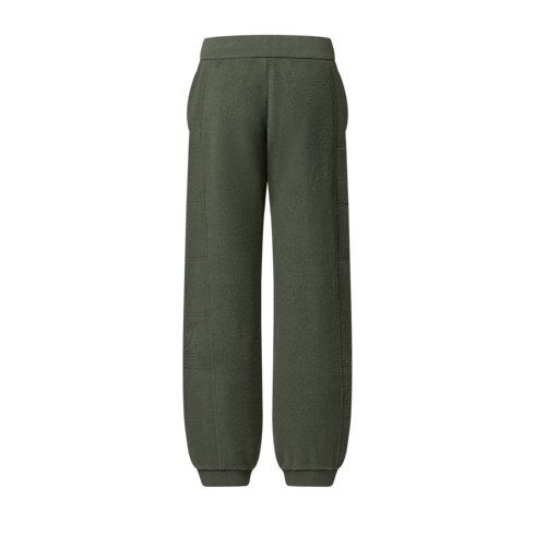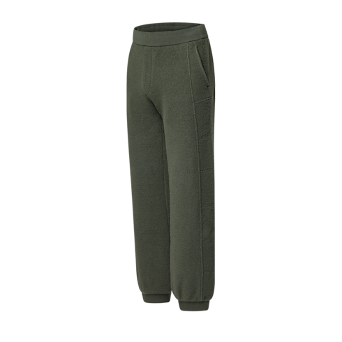 Inspiré des tenues loungewear, ce pantalon à l'élégance décontractée forme le compagnon de voyage idéal. Il s'habille de polaire de laine chaude et texturée dans un coloris vert olive intemporel. Des patchs sportifs surpiqués à l'effet matelassé s'accompagnent d'une broderie LV sur la jambe gauche. Doté d'une taille et de chevilles côtelées, le modèle peut se porter avec le blouson assorti pour composer un ensemble ultra-confortable.