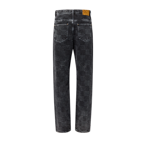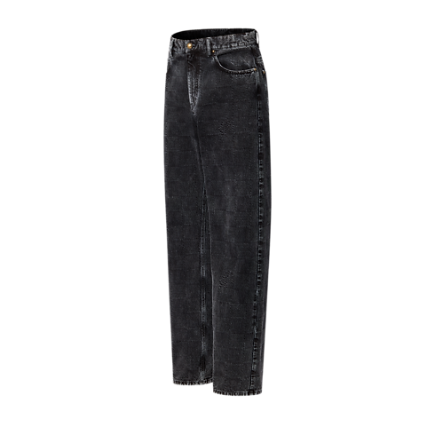 Issu du défilé Automne-Hiver 2024, ce pantalon en denim noir adopte une silhouette droite d'inspiration workwear. Il se pare de toile jacquard Damier délavée qui intègre les signatures « Marque L. Vuitton déposée » pour créer une allure vintage. Un jacqueron Damier en nubuck à l'arrière complète cette pièce qui peut être portée avec une veste coordonnée.