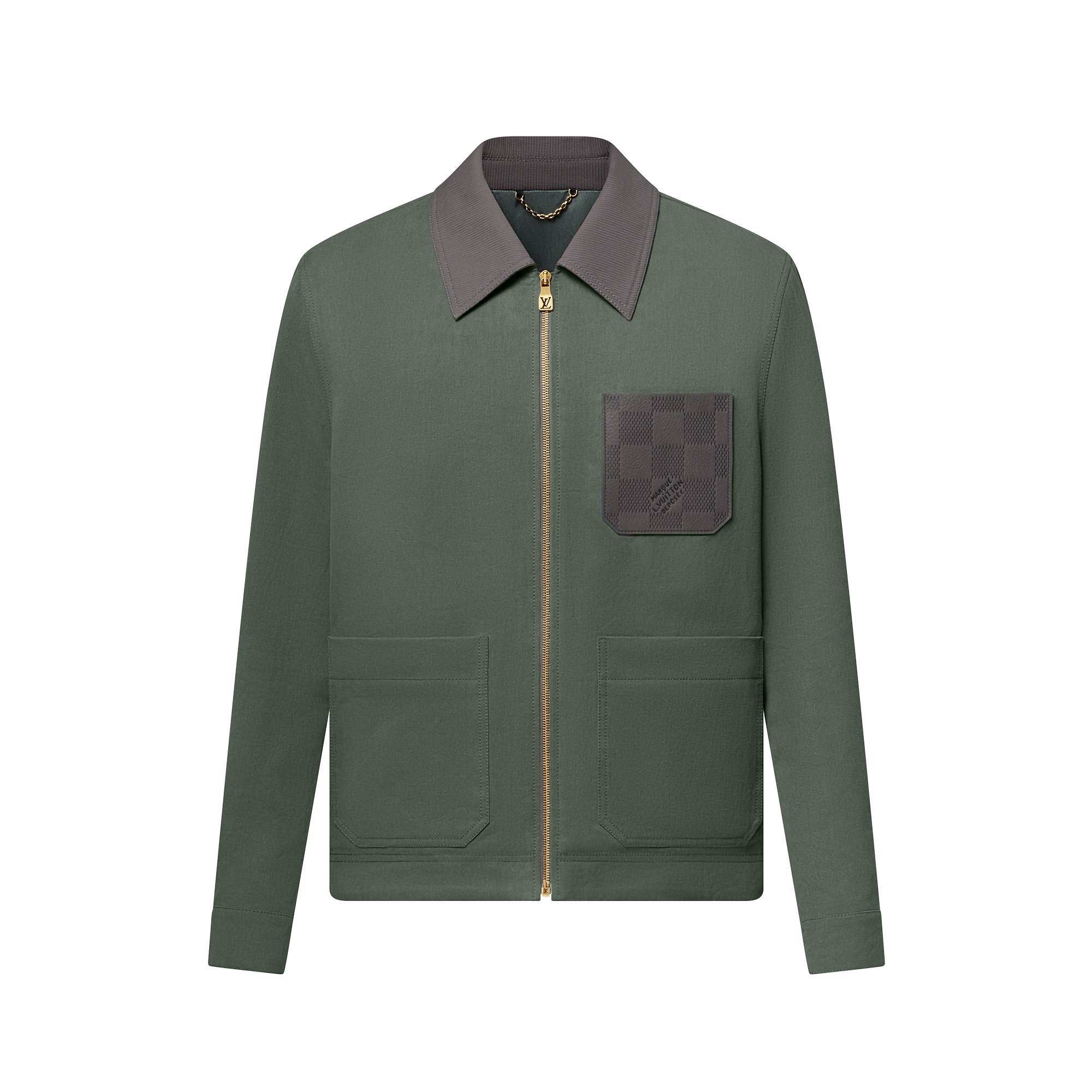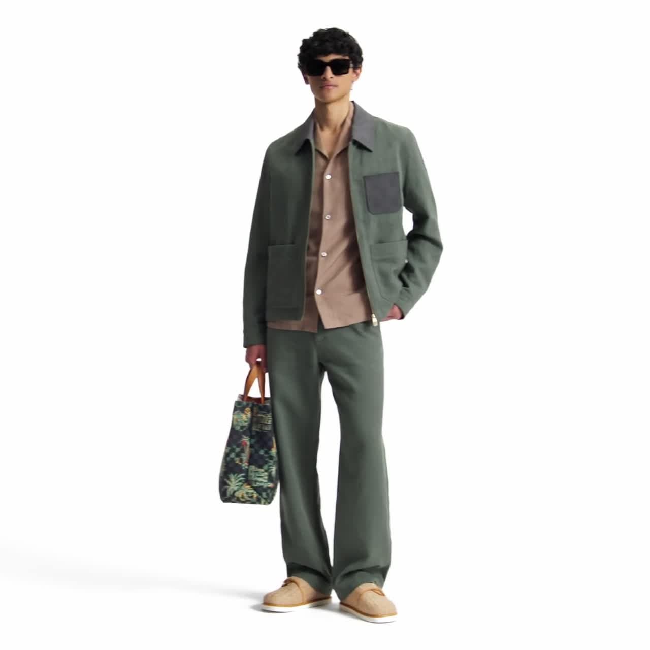 Dans un esprit estival, ce pantalon vert foncé s'habille de toile de lin légère. Sa silhouette minimaliste est sublimée par un jacqueron Damier en nubuck à l’arrière. Idéal au quotidien, ce modèle peut constituer un ensemble contemporain avec la veste workwear assortie.
