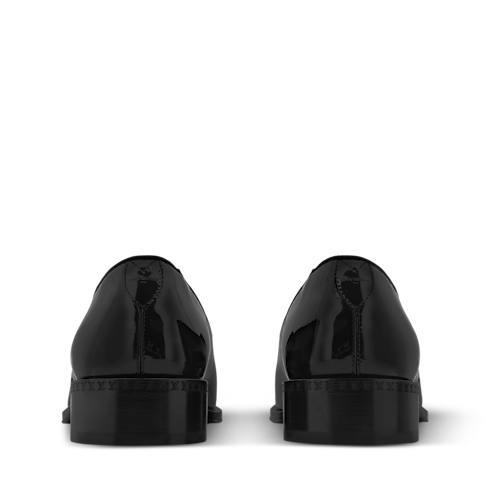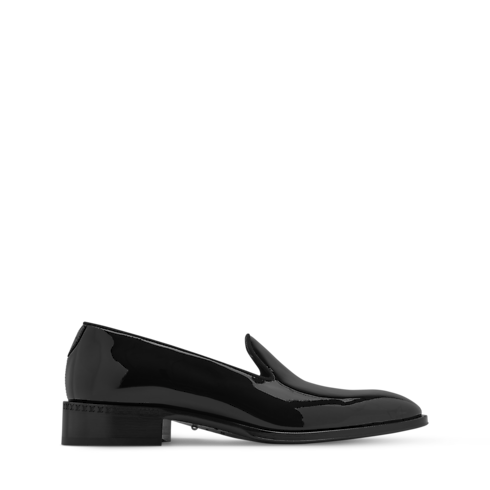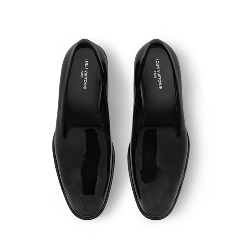 Cette pantoufle LV Premiere est confectionnée en cuir de veau verni brillant qui souligne ses lignes épurées et élégantes. Dotée d'un talon légèrement plus haut qu'à l'accoutumée, elle revisite la silhouette raffinée du modèle typique des gentlemen anglais. L'avant-pied s'orne du motif Monogram dégradé, tandis que la semelle extérieure en cuir est rehaussée d'une perle décorative, signature du Directeur Artistique Homme Pharrell Williams.