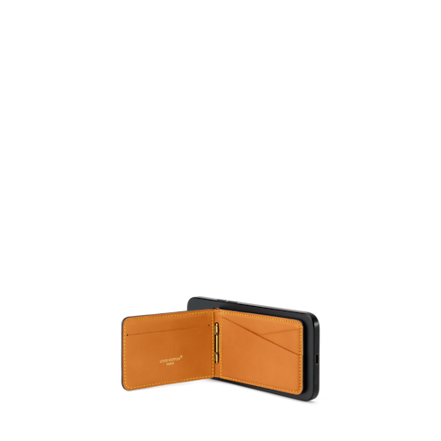 Confectionné en toile Monogram et en cuir de vache naturel, ce porte-cartes Compact Magnet est un portefeuille magnétique pliable conçu pour se fixer à un iPhone. Compatible avec tout iPhone ou étui doté de la technologie MagSafe, il propose deux fentes pour les cartes à l’avant et trois à l’intérieur. Il fait également office de support, maintenant le téléphone en position verticale sur toute surface plane.