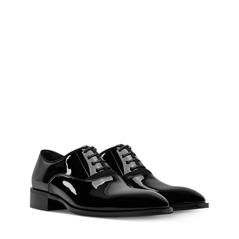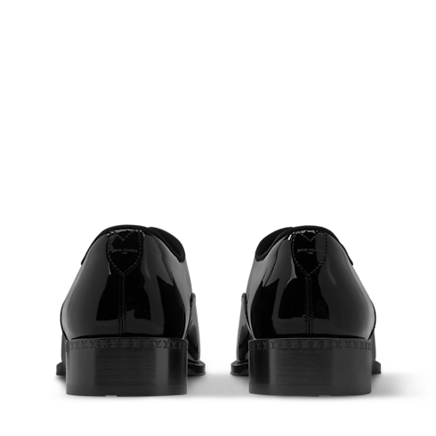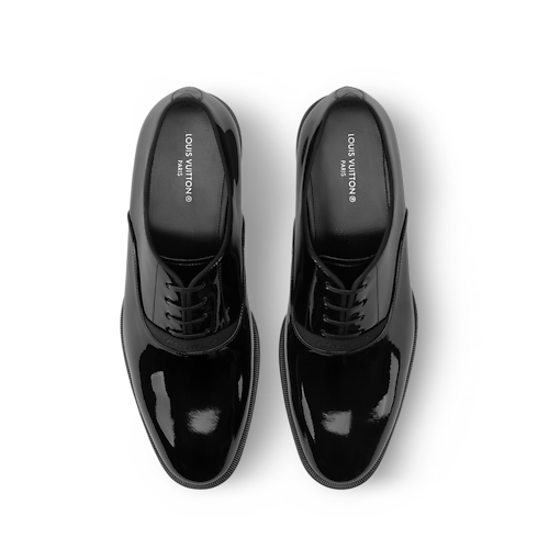 Confectionné en cuir de veau verni, ce richelieu LV Premiere à lacets évoque l'esprit raffiné des gentlemen anglais, revisité par le Directeur Artistique Homme Pharrell Williams. Ses lignes épurées sont rehaussées de détails sophistiqués, notamment une signature brodée sur les lacets. Ce modèle se distingue par un talon légèrement plus haut qu'à l'accoutumée et une semelle extérieure en cuir ornée de la perle emblématique de Pharrell Williams.