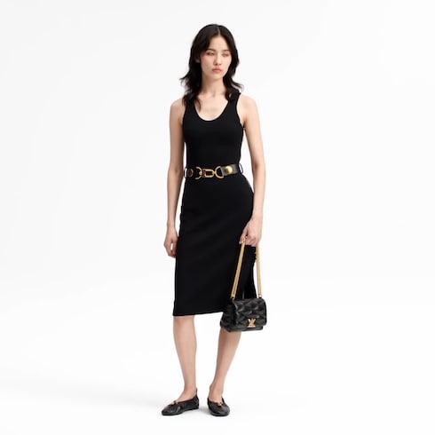 Des détails spectaculaires subliment cette robe discrète d'une note audacieuse. Confectionnée en jersey crêpe de viscose mélangée, cette pièce légère présente une silhouette débardeur épurée qui tombe jusqu'au genou. La taille s'agrémente d'une ceinture épaisse en cuir ornée de clous dorés et d'un mousqueton oversize à l'esprit actuel.