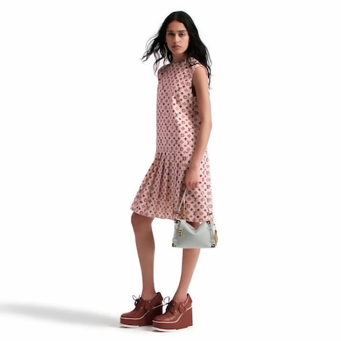 Réalisée en crêpe de Chine en soie infroissable dans une teinte douce de la saison, cette robe plissée s'agrémente d'un motif Monogram interprété avec une finition délavée graphique. La partie principale mise sur les lignes épurées d'une coupe droite, tandis que des plis creux ajoutent un volume romantique à la jupe. Le dos de cette pièce révèle une demi-fermeture à glissière apparente.