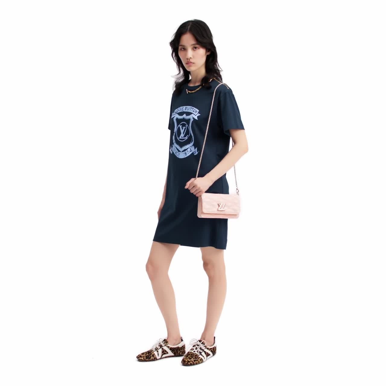 Cette robe tee-shirt droite se caractérise par son allure preppy au goût du jour. Réalisé en jersey de coton doux, ce modèle décontracté présente un col sublimé par un détail fermeture à glissière et chaîne doré partant de l'épaule gauche. Un imprimé LV Crest oversize signe l'avant de la pièce.