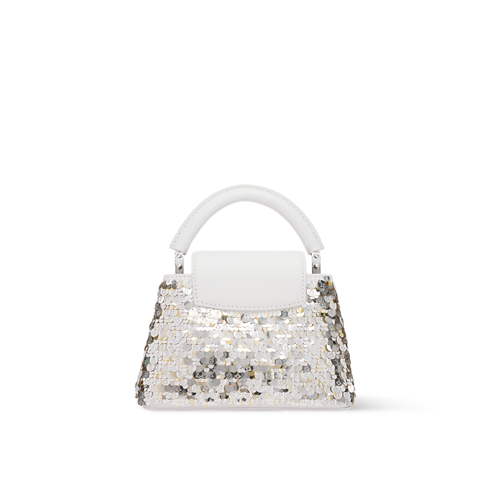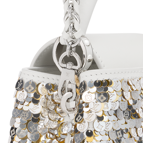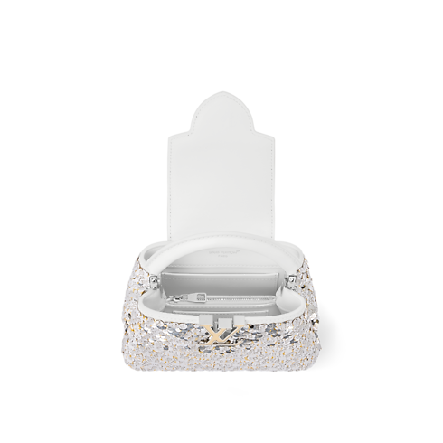 Réinventé dans un élégant coloris Blanc Snow, ce sac Capucines Mini appartient à la collection Exceptionals. Il est confectionné en cuir de veau brodé de sequins scintillants et orné des LV Initiales dorées et argentées assorties à la chaîne tressée. À l'intérieur, il dispose d'une poche plate et offre suffisamment d'espace pour ranger les essentiels du quotidien, y compris un rouge à lèvres.