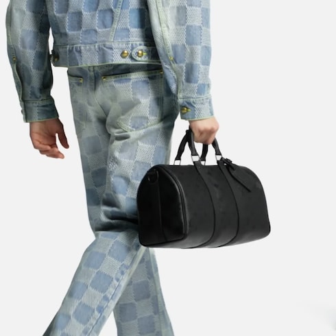 Ce sac Keepall Bandoulière 35 est confectionné en toile Midnight Monogram, rehaussée de finitions en cuir noir assorti. Des pièces métalliques noir mat, dont une fermeture éclair, subliment son allure élégante et contemporaine. Une bandoulière amovible et ajustable en cuir offre la possibilité d’un porté à l'épaule ou croisé, tandis que les poignées supérieures en cuir roulé garantissent un porté confortable à la main.