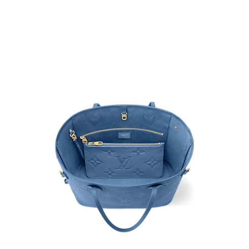 La collection Monogram Empreinte propose cette nouvelle édition du sac cabas Neverfull MM intemporel décliné dans une teinte Blue Jeans raffinée. Ce modèle contemporain en cuir s'orne du motif emblématique de la Maison et de pièces métalliques dorées. Il s'agrémente de lacets latéraux permettant de resserrer sa silhouette et possède un format idéal pour accueillir les indispensables du quotidien, y compris un ordinateur portable.