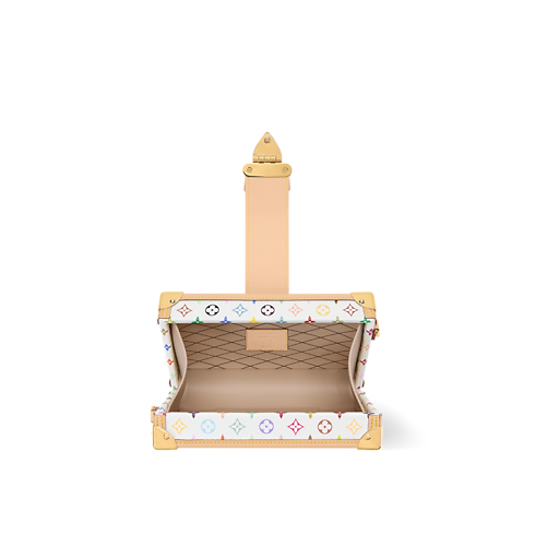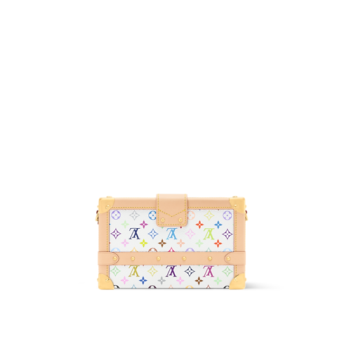 L’emblématique sac Petite Malle se réinvente à l’occasion du 130ᵉ anniversaire du légendaire motif Monogram Louis Vuitton. Cette version est confectionnée en toile Monogram, dans une palette vive multicolore sur fond blanc, et s'orne de signatures dorées, dont des coins inspirés des malles et la traditionnelle serrure S. Il peut être porté croisé grâce à sa bandoulière longue, et dévoile à l’intérieur une étiquette exclusive célébrant cet événement.