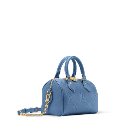 Cette édition du sac Speedy Bandoulière 20 emblématique se distingue par une élégante teinte Bleu Jean. Contemporain et raffiné, ce modèle en cuir Monogram Empreinte est rehaussé d’un cadenas doré accompagné de ses clés, en hommage à la tradition du voyage de la Maison. Doté d'un format idéal pour accueillir les indispensables du quotidien, il se porte croisé, à l’épaule ou à la main.