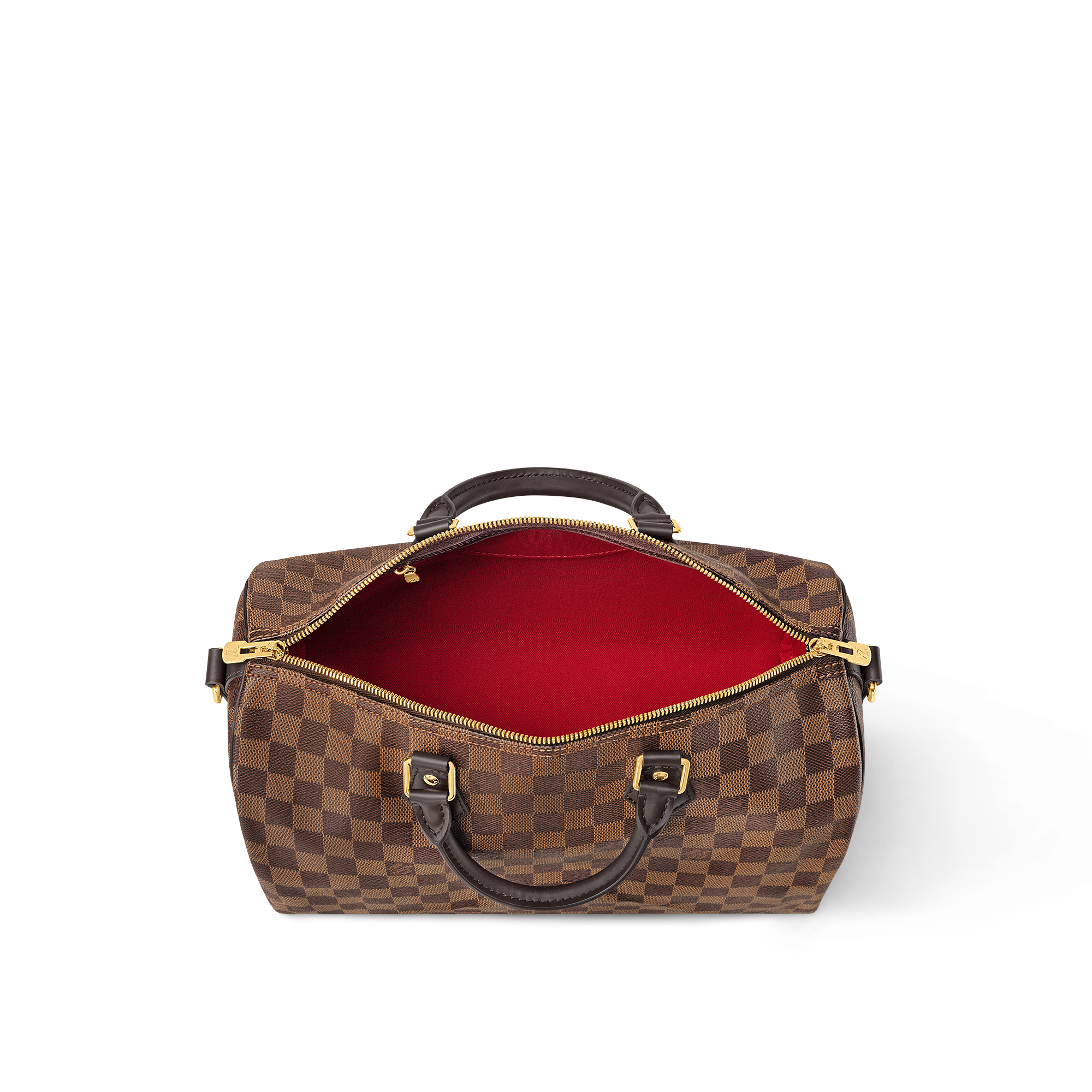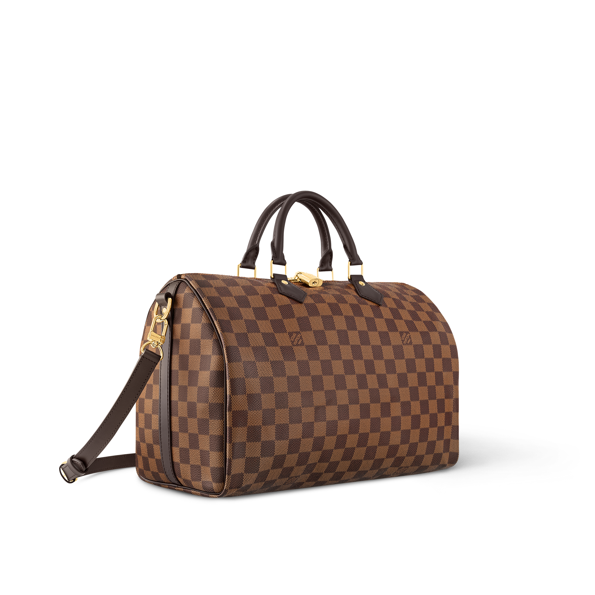 Intemporel, ce sac Speedy Bandoulière 35 en toile Damier Ébène est le compagnon idéal des journées rythmées. Initialement créé dans les années 1930 pour les voyageurs, il tient son nom des transports rapides de l’époque. Ce modèle se distingue par chacun de ses détails, allant de sa forme caractéristique aux poignées en cuir roulé, en passant par le cadenas gravé et la bandoulière amovible.