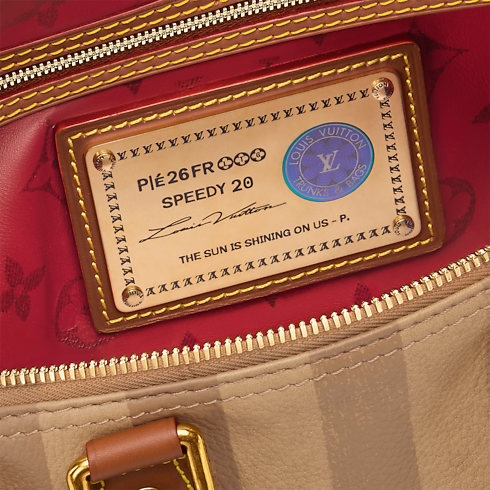 Ce sac Speedy P9 Bandoulière 20 présente des rayures imprimées sur cuir de veau, un clin d’œil aux motifs des malles Louis Vuitton de la fin du XIXᵉ siècle. Le rendu subtilement patiné met en lumière le savoir-faire artisanal de la Maison et renforce l’hommage à son histoire. À l’intérieur, une doublure rouge en cuir de chèvre imprimé Monogram apporte une intensité raffinée.