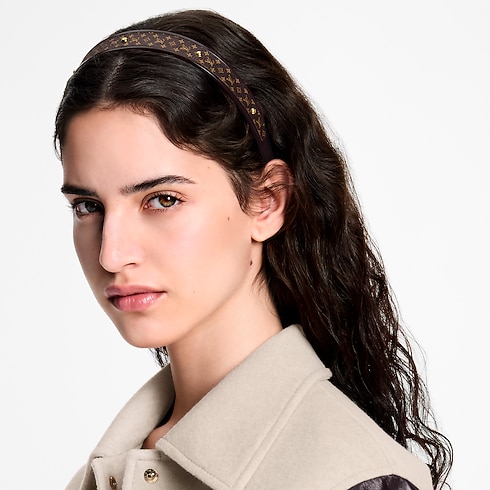 Ce serre-tête MNG en résine au style épuré est une alliance de sophistication et de fonctionnalité. Composé d'une bande en résine, à la fois robuste et flexible, il s'orne du motif Monogram traditionnel rehaussé de clous dorés rappelant les rivets des malles historiques de la Maison. Parfait pour maintenir les cheveux en place, cet accessoire apporte sa touche d’élégance Louis Vuitton.