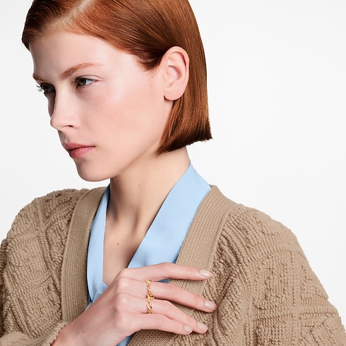 Ce set de bagues LV Script séduit par son design à la fois épuré et distinctif, inspiré de la nouvelle signature Louis Vuitton mise en lumière lors du défilé Printemps-Été 2025. Réalisées en métal doré brillant, les deux bagues dessinent le nom de la Maison dans une écriture manuscrite fluide et élégante. Leur style fantaisie et leur éclat attirent tous les regards sur une silhouette.