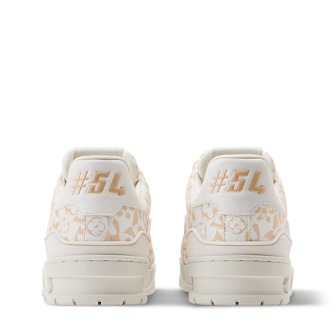 Cette sneaker LV Trainer emblématique est réinterprétée en cuir de veau grainé habillé du motif Monogram Léopard. Ce thème phare des accessoires de la saison associe un imprimé léopard intemporel aux LV Initiales et aux fleurs de Monogram. Inspiré des chaussures de basket-ball vintage, ce modèle s'agrémente de multiples signatures de la Maison et d'une semelle extérieure en gomme technique.