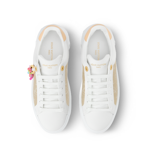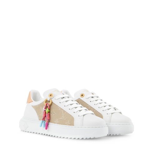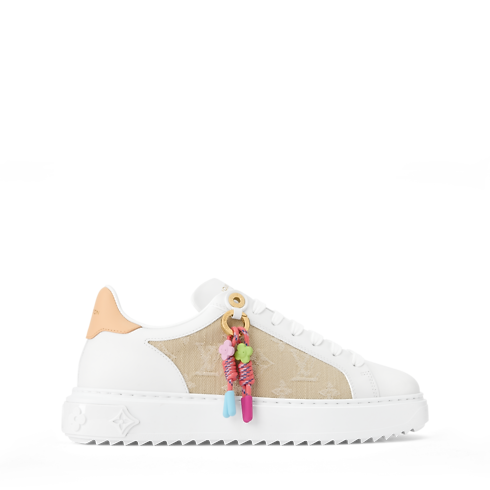 Cette sneaker Time Out emblématique est revisitée dans une alliance de denim Monogram et de cuir de veau lisse. Ce modèle présente une note ludique grâce aux charms fleur de Monogram colorés suspendus à un anneau doré. Parmi les autres détails raffinés figurent un empiècement en cuir naturel à l’arrière et des fleurs de Monogram sur la semelle extérieure légère et surélevée.