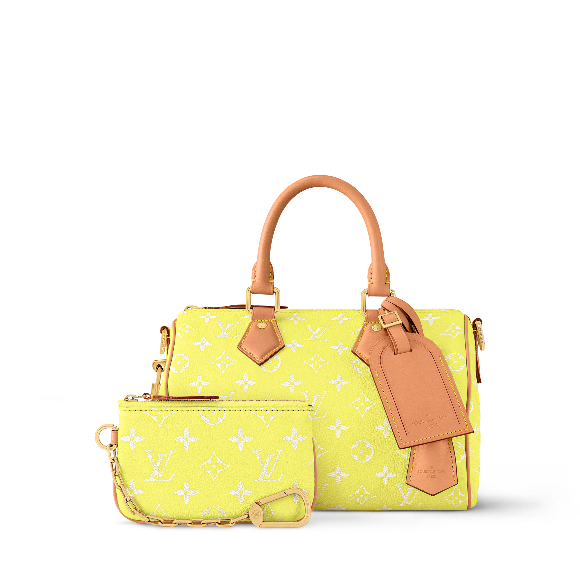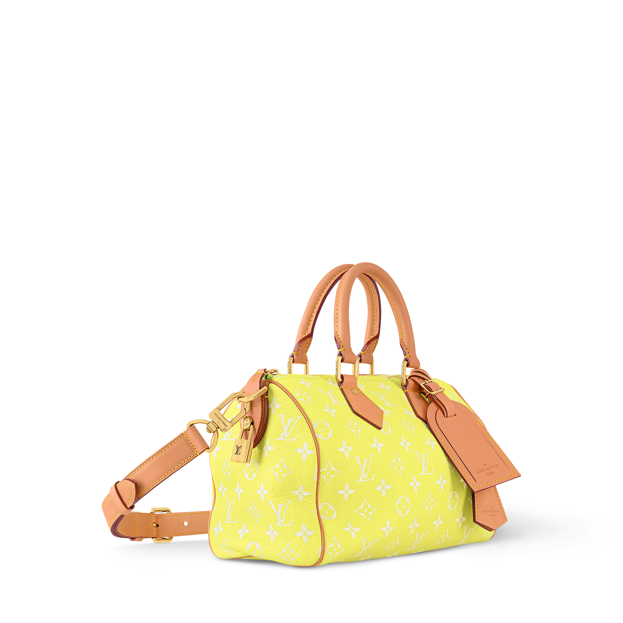 Ce sac Speedy P9 Bandoulière 25 est confectionné en cuir de veau aux couleurs acidulées présentant un effet délavé au soleil. Idéal au quotidien, ce modèle se dote d'une doublure en cuir d'agneau somptueux et d'une pochette en cuir amovible à l'intérieur. Les deux poignées supérieures, et la bandoulière amovible et ajustable assurent différentes options de porté.