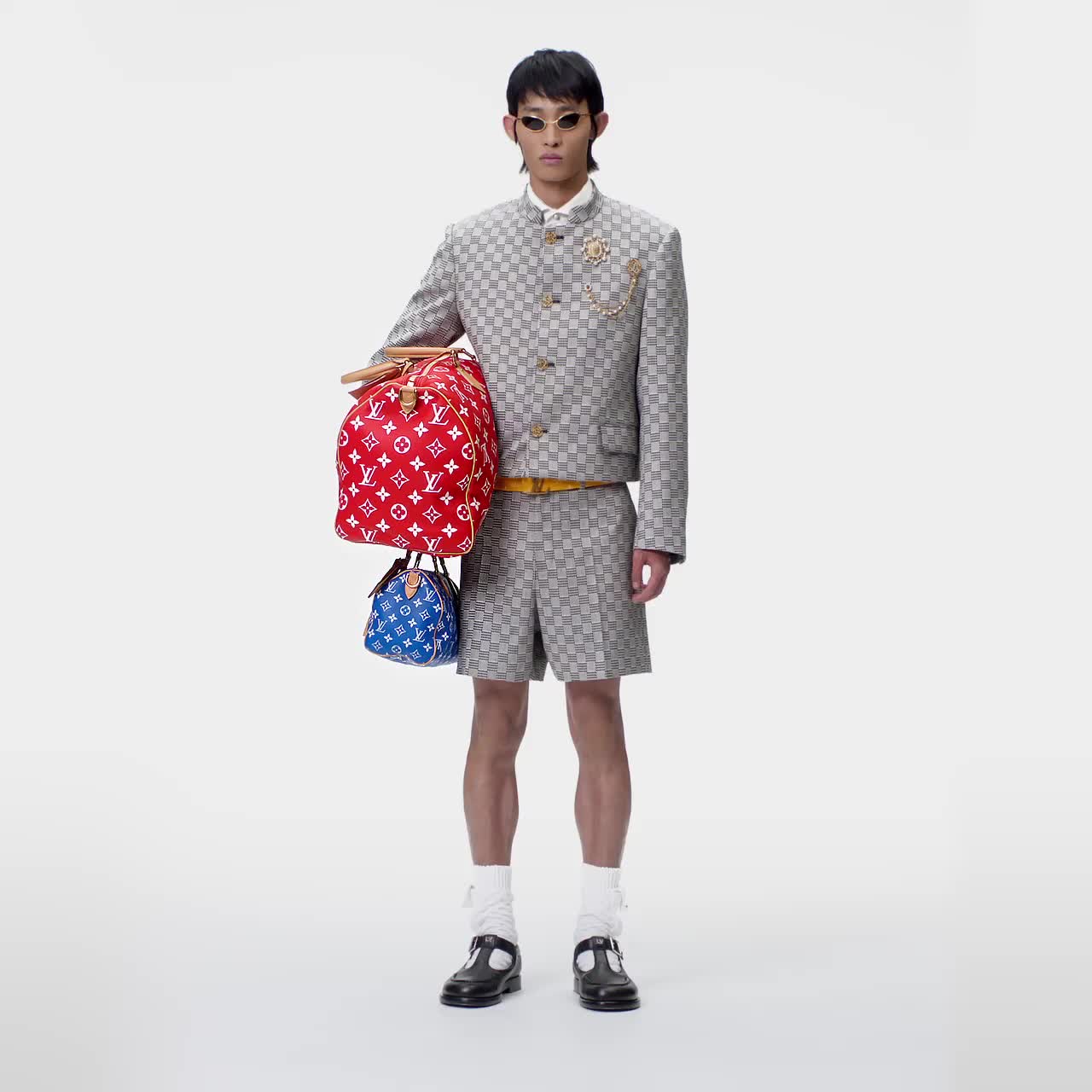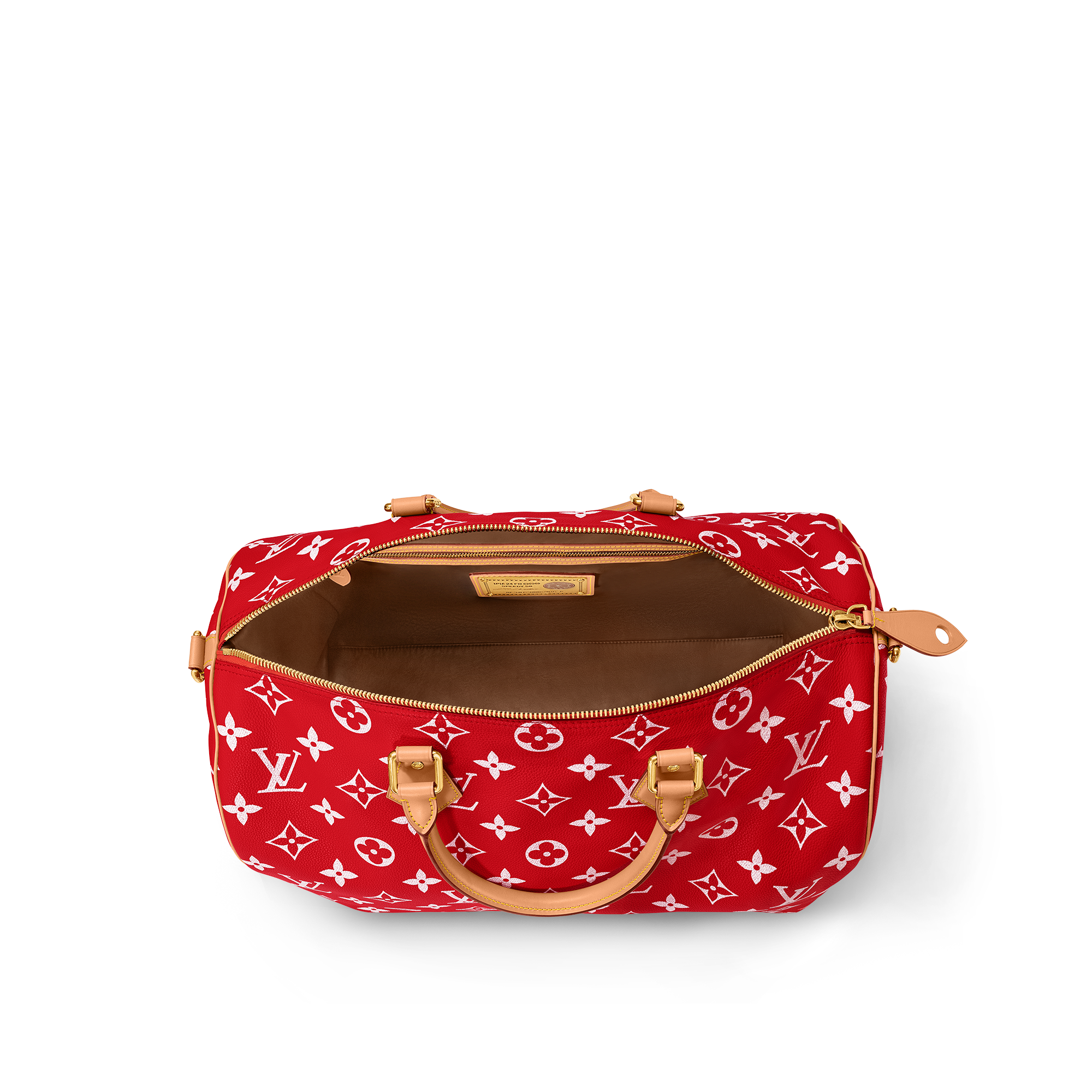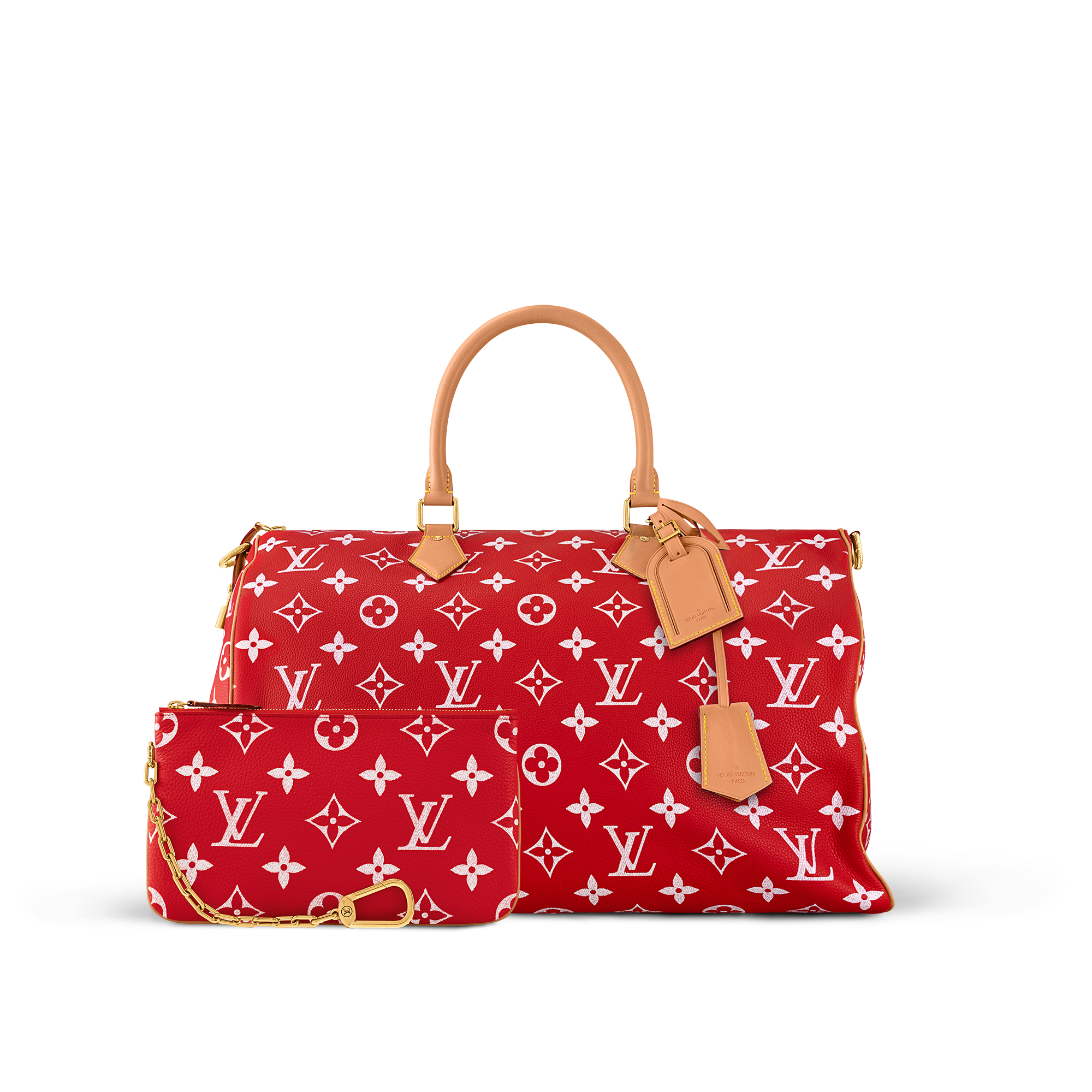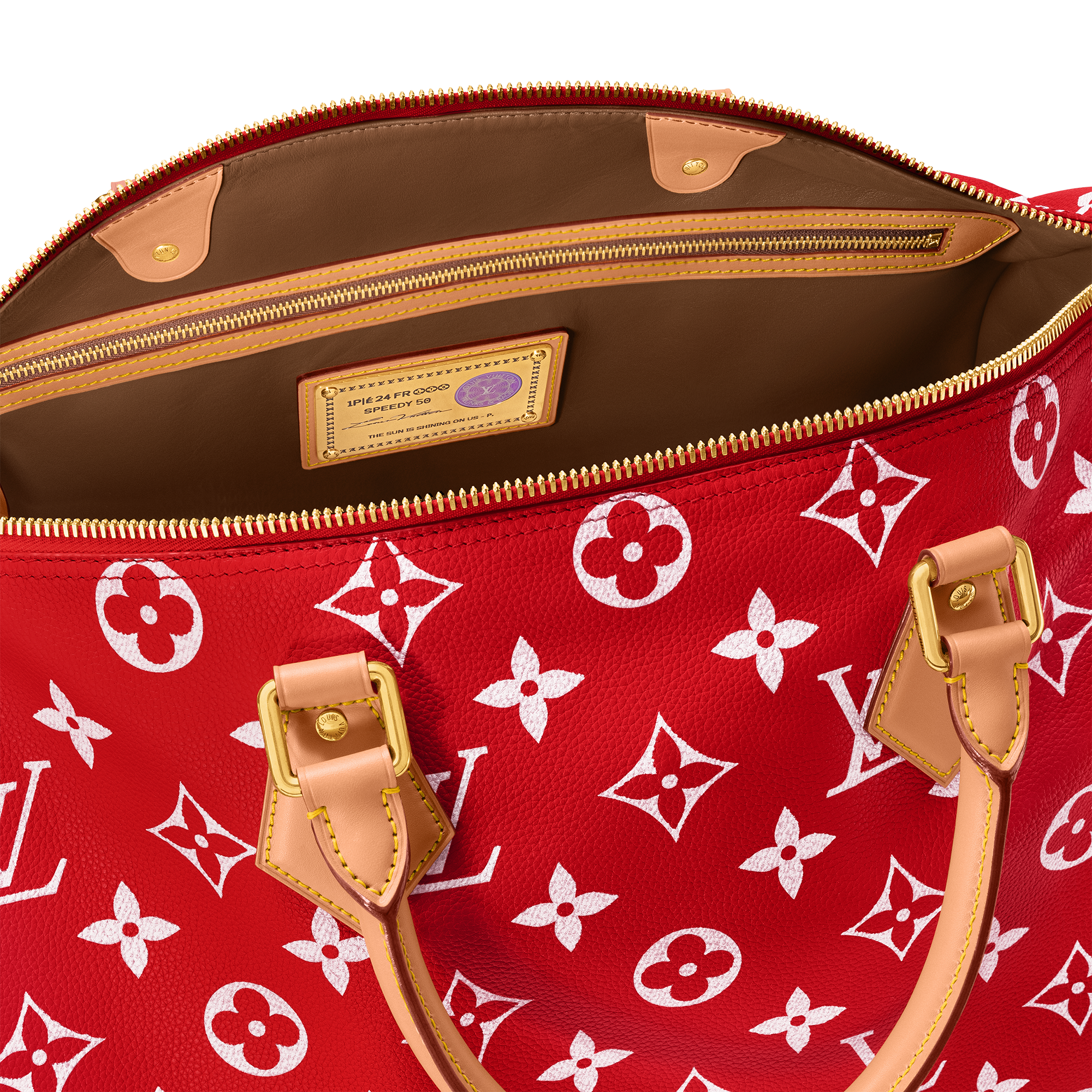 Ce sac Speedy P9 Bandoulière 50 Monogram est revisité par le directeur artistique Pharrell Williams en cuir de veau souple et somptueux à la nuance primaire éclatante. Le motif Monogram est imprimé sur le Speedy à l'aide d'une technique de sérigraphie sophistiquée qui reproduit l'aspect sergé du Monogram sur la toile. Il adopte un effet flouté qui donne l'illusion d'avoir été peint à la main.