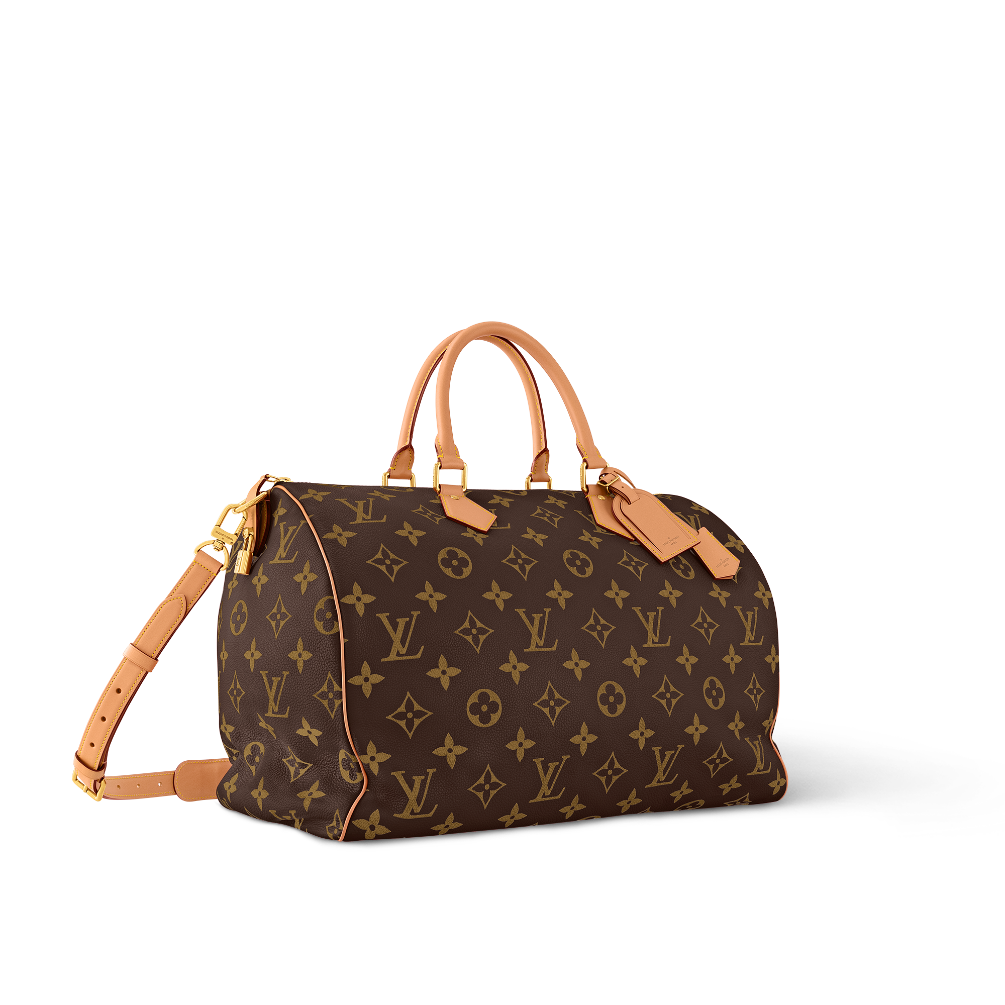 Le directeur artistique Pharrell Williams revisite ce sac emblématique Speedy P9 Bandoulière 50 avec du cuir de veau doux et souple rehaussé du motif Monogram classique. L'imprimé est réalisé selon une technique de sérigraphie sophistiquée qui reproduit l'aspect sergé de la toile Monogram, donnant au motif un effet flou presque peint à la main.