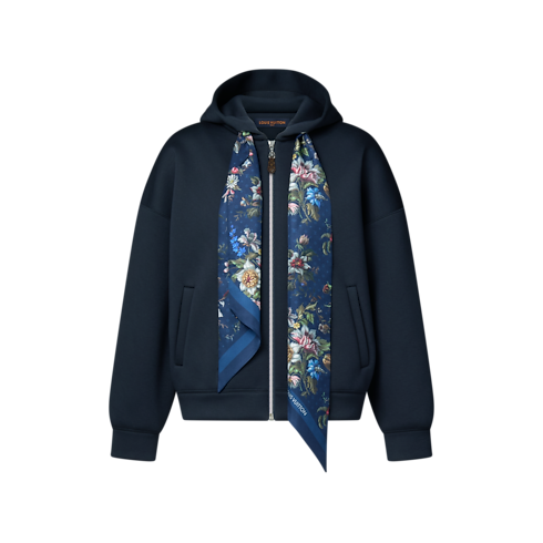 Version élégante d’une pièce incontournable et intemporelle, ce sweat à capuche procure confort et chaleur grâce à son jersey de viscose double face et ses deux poches latérales. Le cordon de la capuche est revisité de manière ludique en foulard de soie fleurie sophistiqué orné de détails emblématiques. L'ensemble est complété par une fermeture éclair à tirette en toile Monogram.