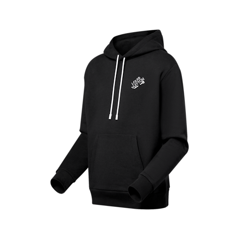Ce sweatshirt à capuche élégant se compose de molleton de coton brossé. Il présente une capuche doublée, une poche kangourou ainsi qu'un ourlet et des poignets côtelés. Cette pièce dévoile l'un des coloris phares de la saison nuancé par des éléments blancs, dont un cordon et une broderie Louis Vuitton sur la poitrine accentuée d'une épingle.