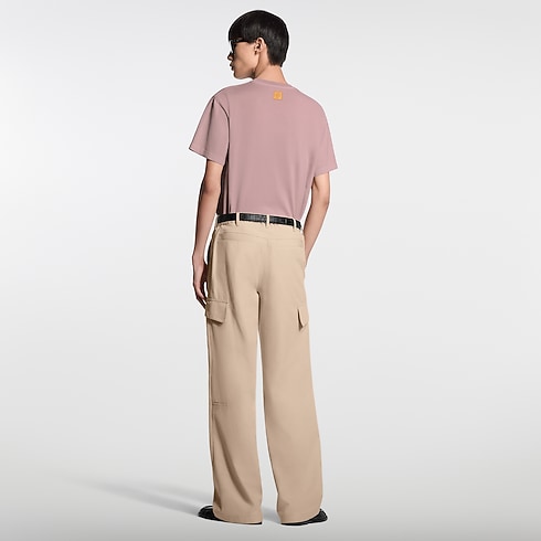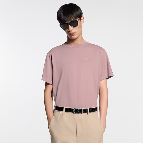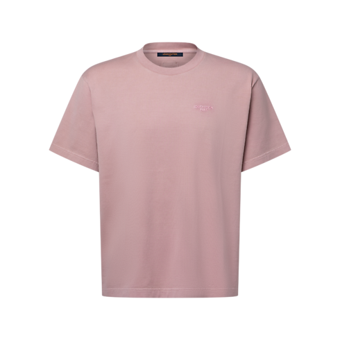 Ce tee-shirt en coton biologique issu du défilé Printemps-Été 2026 se décline dans le rose poudré emblématique de la saison. Il présente une finition vintage délavée, inspirée de la riche tradition indienne en matière de teinture naturelle, présente dans toute la collection. Une signature brodée discrète orne la poitrine, tandis qu’un patch en cuir « Marque L. Vuitton Déposée » signe le dos.