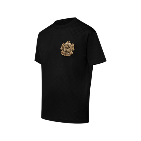 Ce tee-shirt majestueux s'inspire du thème de la collection : les promeneurs de chiens de Westminster. Réalisé dans du piqué de coton biologique avec un jacquard Damier texturé, il revêt un coloris noir sublimé par des détails dorés brodés, dont un patch blason LV Dog sur la poitrine. Idéale pour les fêtes de fin d'année, cette pièce apportera une note d'élégance aux tenues décontractées.