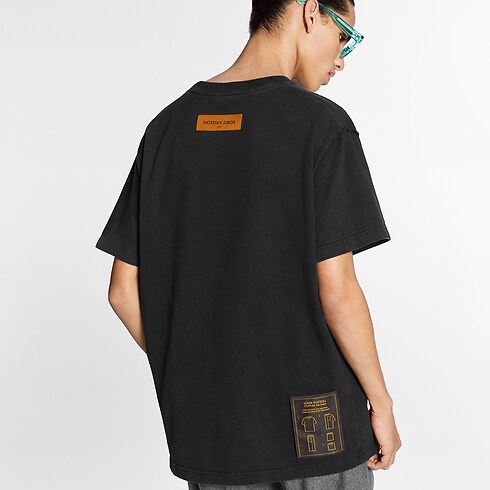 Décliné en gris et bleu marine selon une coupe légèrement ample, ce tee-shirt comporte plusieurs signatures Louis Vuitton discrètes. Les épaules sont soulignées de coutures retournées, tandis que le dos est signé d'une languette à effet inversé et d'une étiquette amovible Louis Vuitton Staples Edition. L'ensemble est rehaussé d'une agrafe gravée sur le côté gauche.