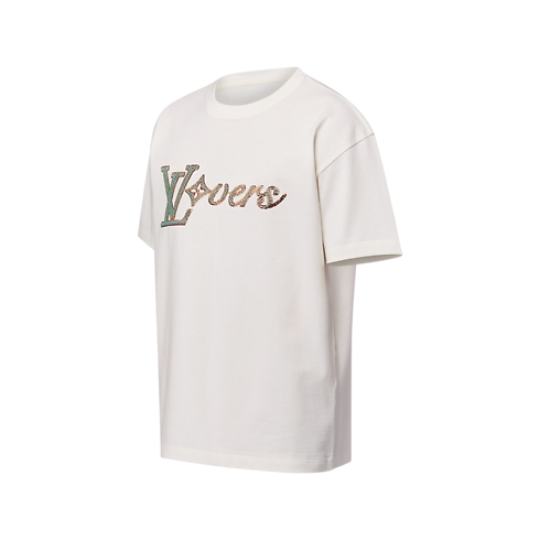 Confectionné en coton biologique doux, ce tee-shirt blanc décontracté présente une silhouette classique rehaussée d'une signature LV Vers brodée en perles sur la poitrine. Cette pièce prête une note sophistiquée aux tenues du quotidien.