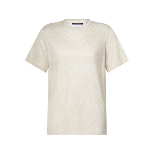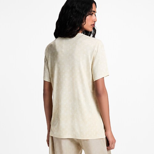 Ce tee-shirt décontracté se réinvente dans un mélange fluide de jersey et de soie, offrant un look élégant au quotidien. Il présente une coupe droite intemporelle, un col rond raffiné et s’illustre par l’imprimé intégral du motif Monogram Cloud onirique de la Maison, décliné dans la palette douce de la saison.
