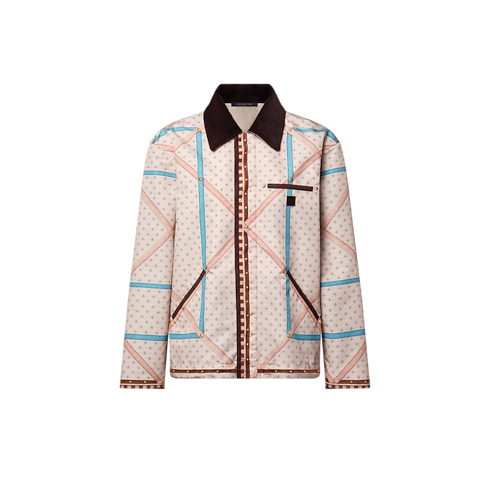 Confectionnée en nylon léger déperlant, cette veste emblématique rend hommage à l’héritage de la Maison en matière de voyage à travers un imprimé représentant l’intérieur d’une malle Louis Vuitton issue des archives. Le col en velours côtelé contrasté et la doublure en soie ajoutent à son confort, tandis que la fermeture éclair dissimulée préserve la netteté de la silhouette. Ce modèle dispose de deux poches latérales.