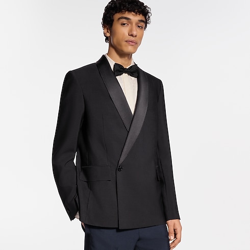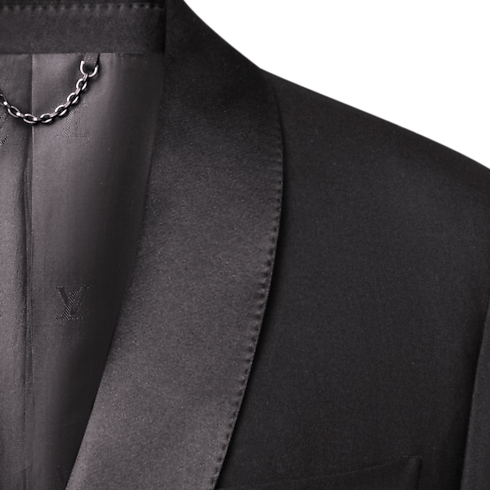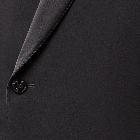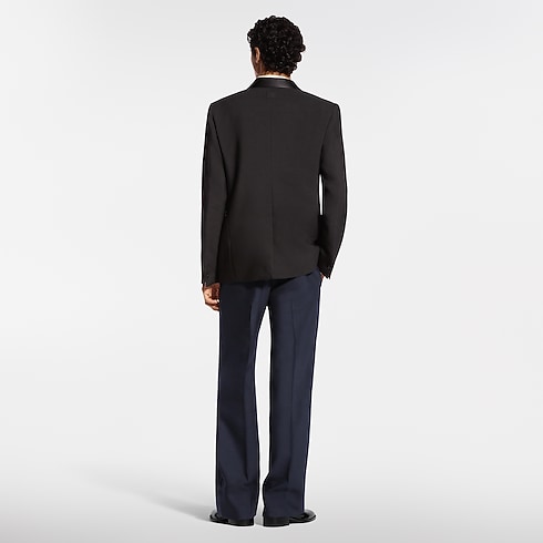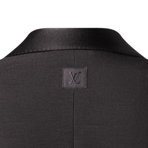 Des lignes minimalistes soulignent l’élégance épurée de cette veste de smoking croisée, confectionnée en crêpe de laine et de soie noir et soulignée d’un revers châle en satin. Un bouton emblématique façon bijou sublime la fermeture, tandis que des points droits ajoutent un détail tailoring classique. Les finitions comprennent une étiquette LV tissée au dos et une doublure LV Blason. Avec le pantalon assorti, cette pièce compose un ensemble de soirée sophistiqué.