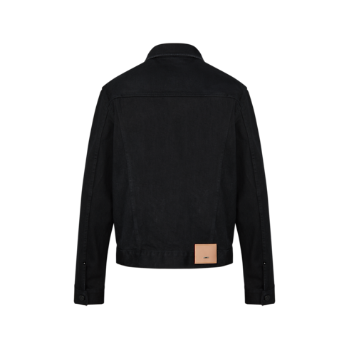 Cette veste en denim DNA revisite le modèle classique avec un col carré. Cette pièce de coupe standard possède des finitions métalliques déformées ton sur ton ainsi qu'une étiquette en cuir naturel embellie d'agrafes en palladium au dos. Fixée à l'aide d'un crochet noir, son étiquette amovible en denim Louis Vuitton Staples Edition s'accorde au jean slim.