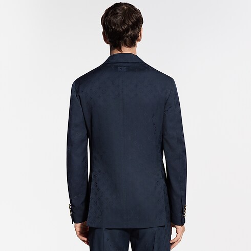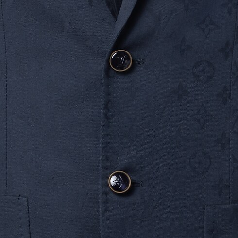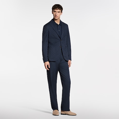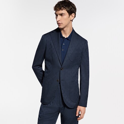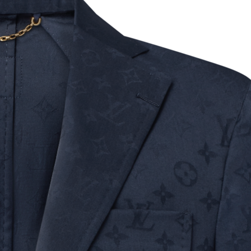 Cette veste Napolitana à boutonnage simple, souplement structurée, allie légèreté, confort et élégance. Le tissu en laine bleu marine à l'allure intemporelle s'habille du motif Monogram en jacquard ton sur ton qui joue avec subtilité sur les accents mats et brillants. Avec le pantalon à taille élastique assorti, cette pièce compose un ensemble raffiné à associer selon l’occasion avec une chemise coordonnée ou avec un pull léger pour créer un look spontané.