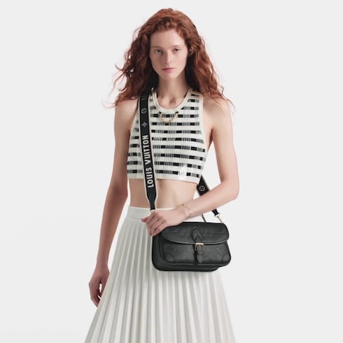 Tas Diane ini terbuat dari Monogram Empreinte, yang merupakan bahan kulit dengan emboss khas Rumah Mode. Hadir dalam model satchel bag, desainnya dilengkapi tali kulit yang dapat dilepas untuk dibawa di bahu maupun tangan, serta tali selempang yang dapat dilepas dari bahan jacquard berhiaskan tulisan "Louis Vuitton". Tas ini menyempurnakan penampilan bergaya chic atau sporty.