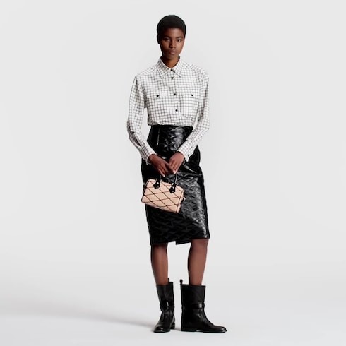 Tas tangan Speedy 20 Bandoulière edisi ini hadir dalam balutan lambskin berwarna beige, serta dihiasi motif Malletage ikonis bernuansa merah tua. Tas ini memiliki berbagai opsi pemakaian, baik dengan handle Toron maupun tali yang terbuat dari kombinasi rantai dan kulit yang dapat dilepas. Penutup ritsleting ganda dengan padlock keemasan yang khas melengkapi desain tas ini.
